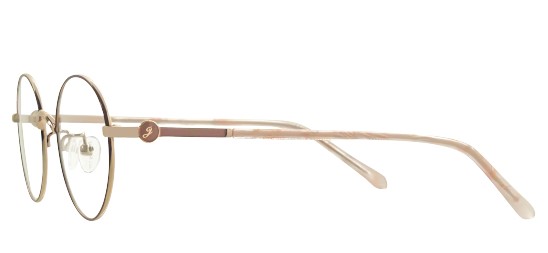 肌なじみのあるリムカラーと、フェミニンなマーブル柄のテンプルが上品に調和しています。
